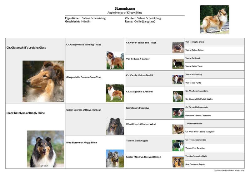 *01.03.2012 Vater: CAN CH Glasgowhill´s Looking Glass Mutter: Black Katelynn of Kingly Shine Ahnentafel Retired - in Rente!